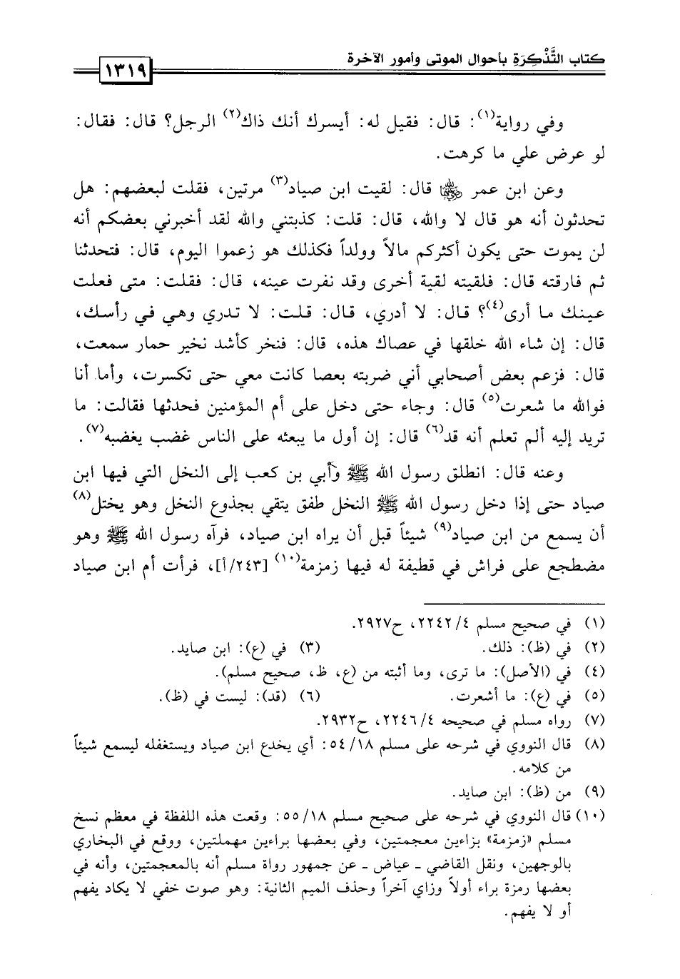 وعن ابن عمر قال: لقيت ابن صياد مرتين، فقلت لبعضهم، هل تحدثون أنه هو؟ قال: لا والله.