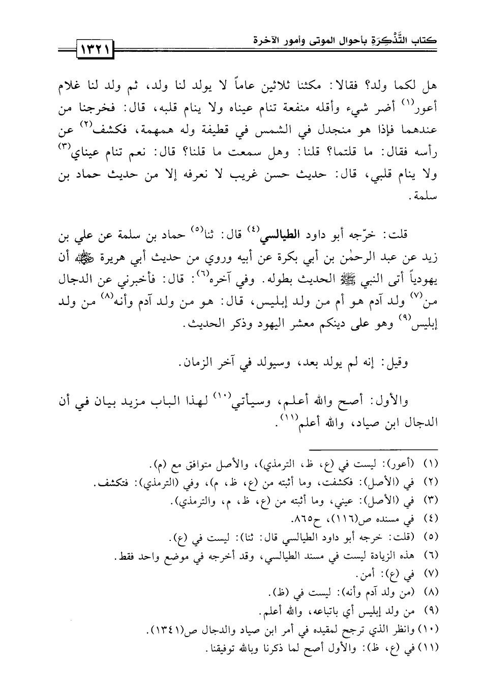 هل لكما ولد؟ فقالا: مكثنا ثلاثين عاماً لا يولد لنا ولد ثم لنا غلام أعور أضر شيء وأقله منفعة تنام عيناه ولا ينام قلبه، قال: فخرجنا من عندهما، فإذا هو منجدل في الشمس في قطيفة وله همهمة فكشف عن رأسه فقال: ما قلتما؟ قلنا: وهل سمعت ما قلنا؟ قال: نعم تنام عيناي ولا ينام قلبي.