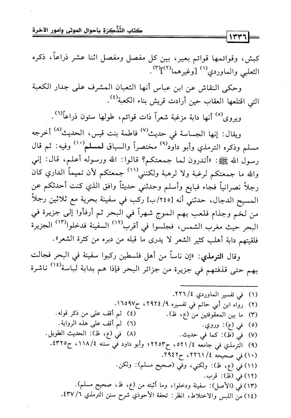 وقال الترمذي: إن ناساً من أهل فلسطين ركبوا سفينة في البحر فجالت بهم حتى قذفتهم في جزيرة من جزائر البحر، فإذا هم بداية لباسة ناشرة