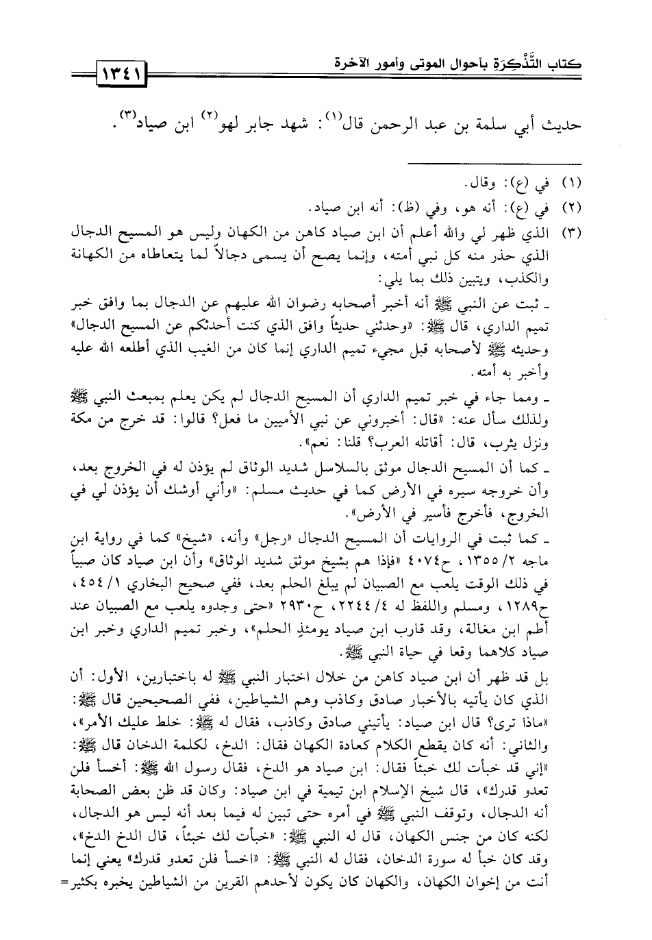 حديث أبي سلمة بن عبد الرحمن قال: شهد جابر أنه هو ابن صياد