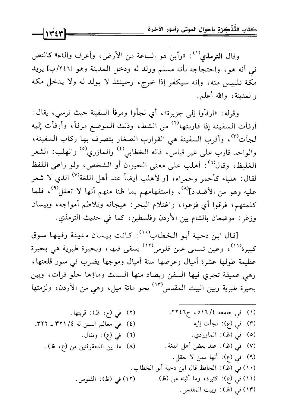 وقال الترمذي: وأين هو الساعة من الأرض وأعرف والده كالنص في أنه هو واحتجاجه بأنه مسلم وولد له ودخل المدينة وهو يريد مكة تلبس منه، وأنه سيكفر إذا خرج، وحينئذ لا يولد له ولا يدخل مكة والمدينة، والله أعلم.