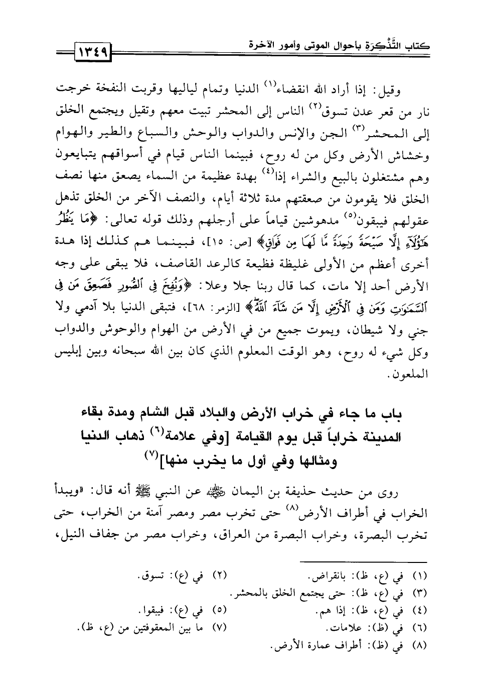 ما جاء في خراب الأرض والبلاد قبل الشام ومدة بقاء المدينة خراباً قبل يوم القيامة وفي علامة ذهاب الدنيا ومثالها وفي أول ما يخرب ما يخرب منها.
