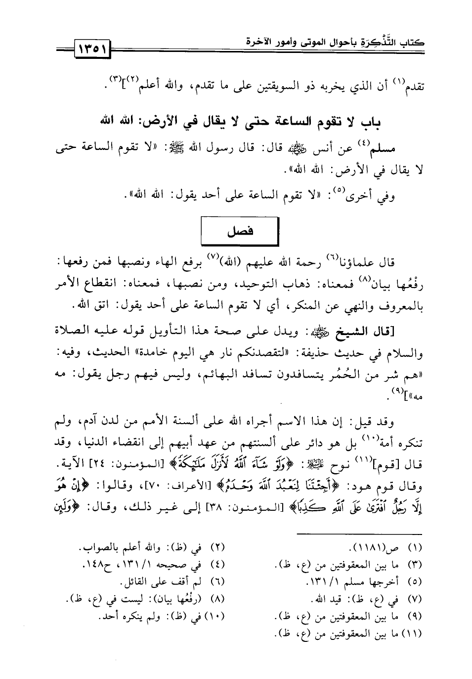 مسلم «عن أنس قال: قال رسول الله صلى الله عليه وسلم: لا تقوم الساعة حتى لا يقال في الأرض: الله الله» .