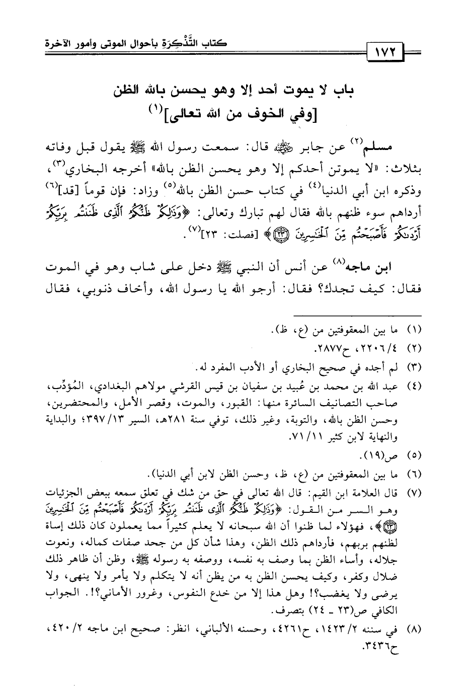 باب لا يموت أحد وهو يحسن بالله الظن وفي الخوف من الله تعالى