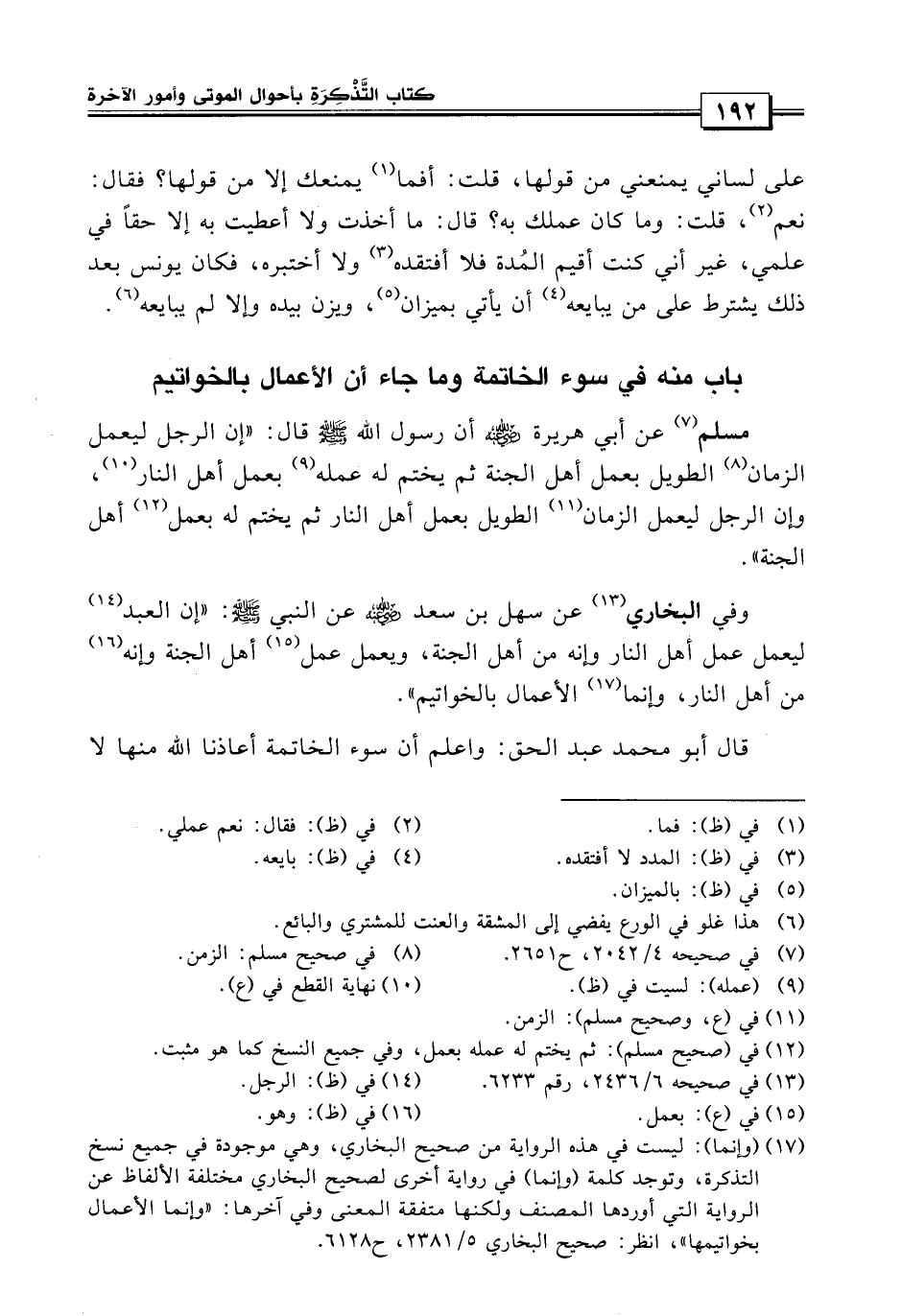 قال أبو محمد عبد الحق: اعلم أن سوء الخاتمة ـ أعاذنا الله منها ـ لا