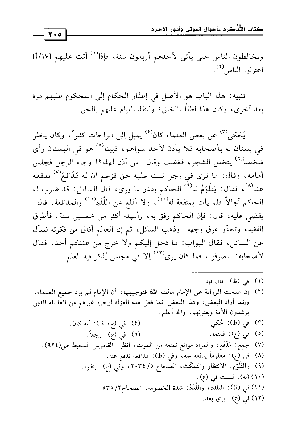 تنبيه: هذا الباب هو الأصل في إعذار الحكام إلى المحكوم عليه مرة بعد أخرى، وكان هذا لطفاً بالخلق ولتنفيذ القيام عليهم بالحق.