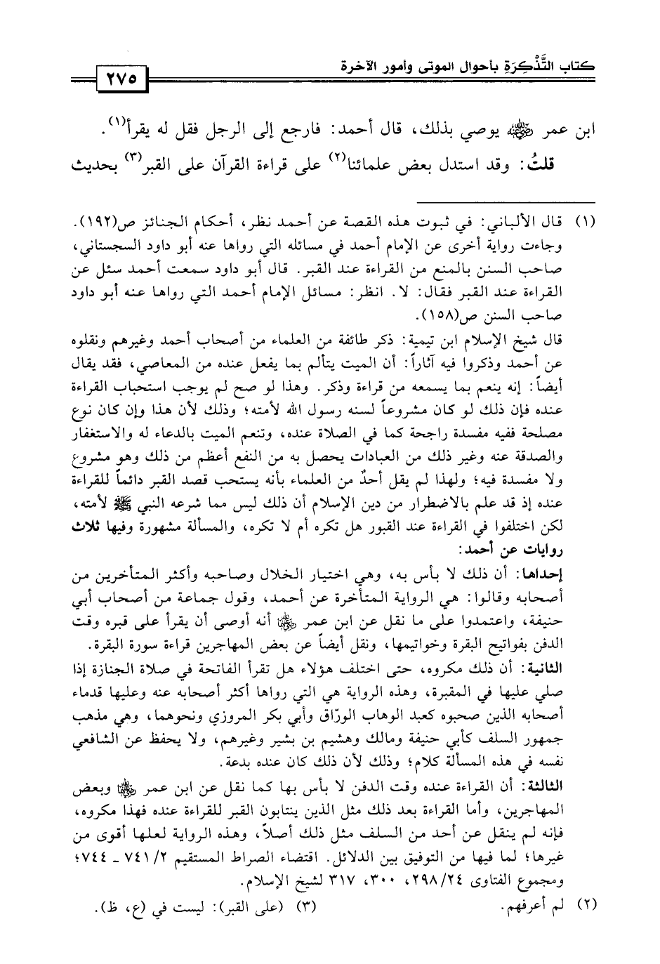 كتاب التذكرة بأحوال الموتى وأمور الآخرة