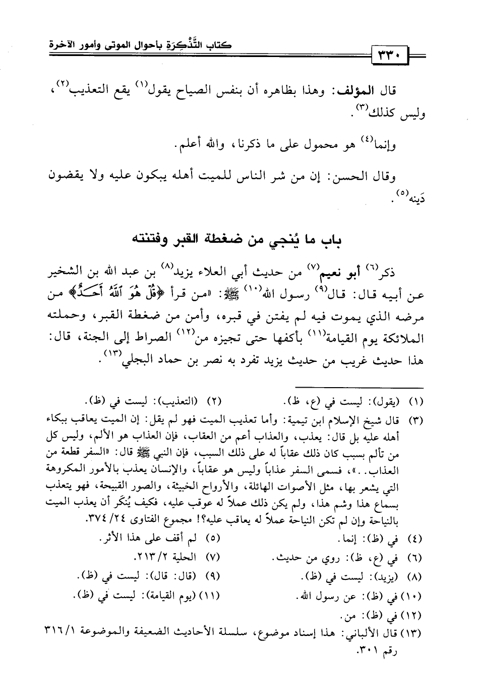 قال المؤلف رضي الله عنه: وهذا بظاهره أن بنفس الصياح يقع التعذيب وليس كذلك.