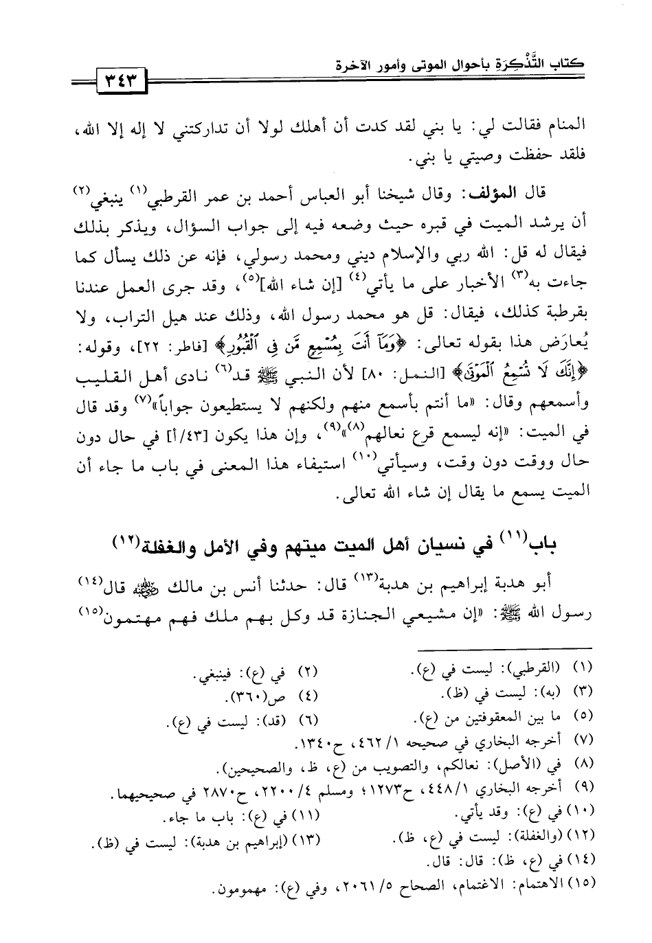 ولكنهم لا يستطيعون جواباً» ، وقد قال في الميت: «إنه ليسمع قرع نعالهم.