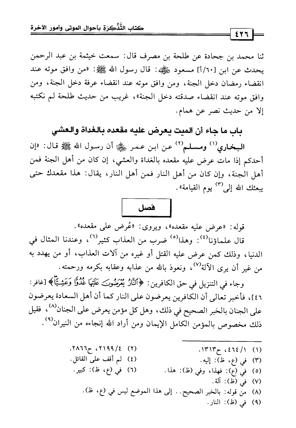 باب ما جاء أن الميت يعرض عليه مقعده بالغداة والعشي