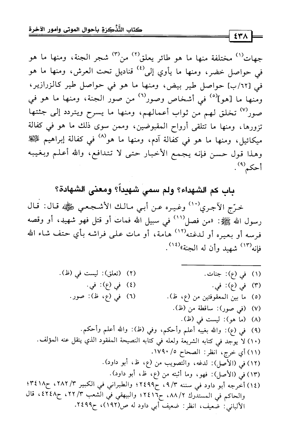 باب كم الشهداء؟ ولم سمي شهيداً؟ ومعنى الشهادة