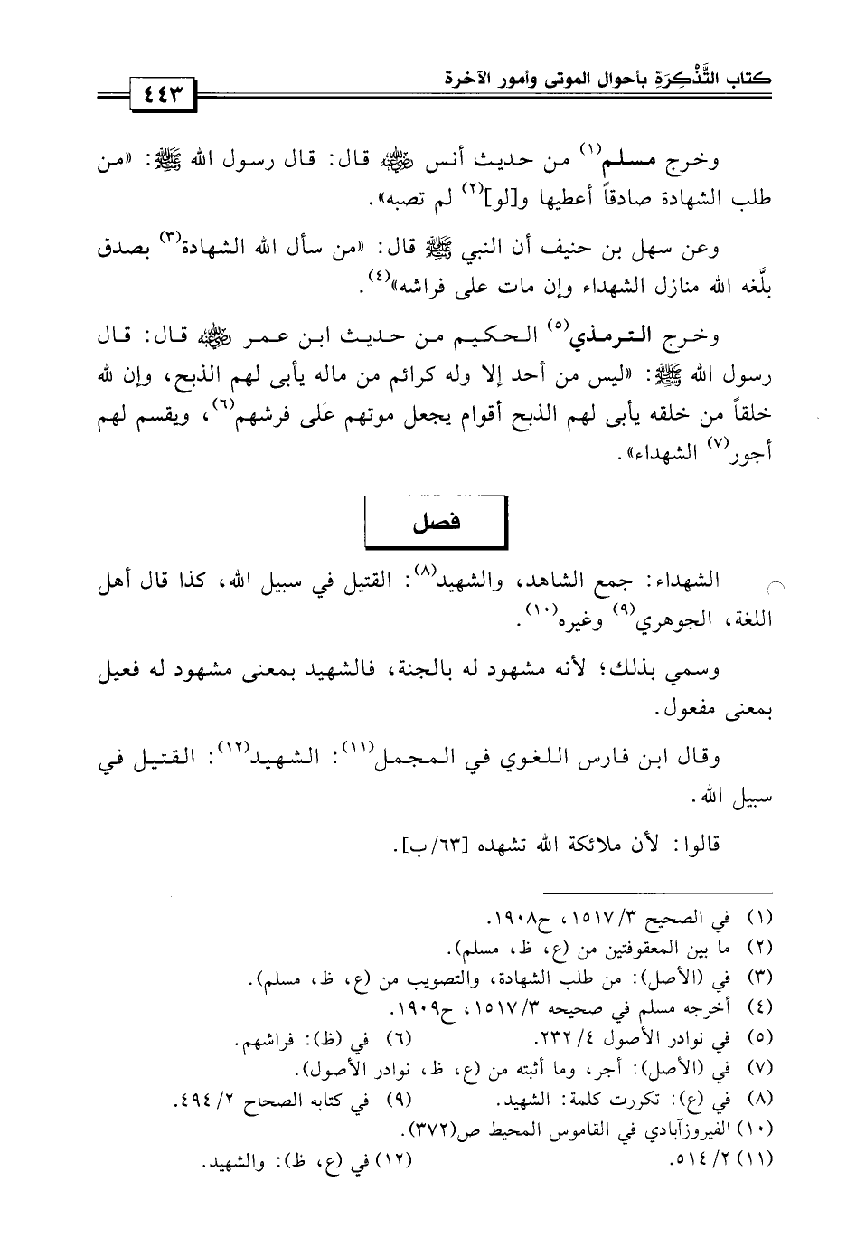 فصل: الشهداء جمع الشاهد.