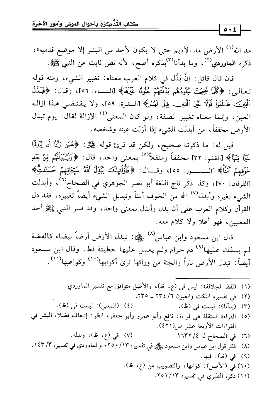 قال: {وليبدلنهم من بعد خوفهم أمناً} وقال: {فأولئك يبدل الله سيئاتهم حسنات} وكذا ذكر تاج اللغة أبو نصر الجوهري في الصحاح، وأبدلت الشيء بغيره وبدله الله من الخوف أمناً وتبديل الشيء أيضاً تغييره، فقد دل القرآن وكلام العرب على أن بدل وأبدل بمعنى واحد، وقد فسر النبي صلى الله عليه وسلم أحد المعنيين، فهو أعلى ولا كلام معه.