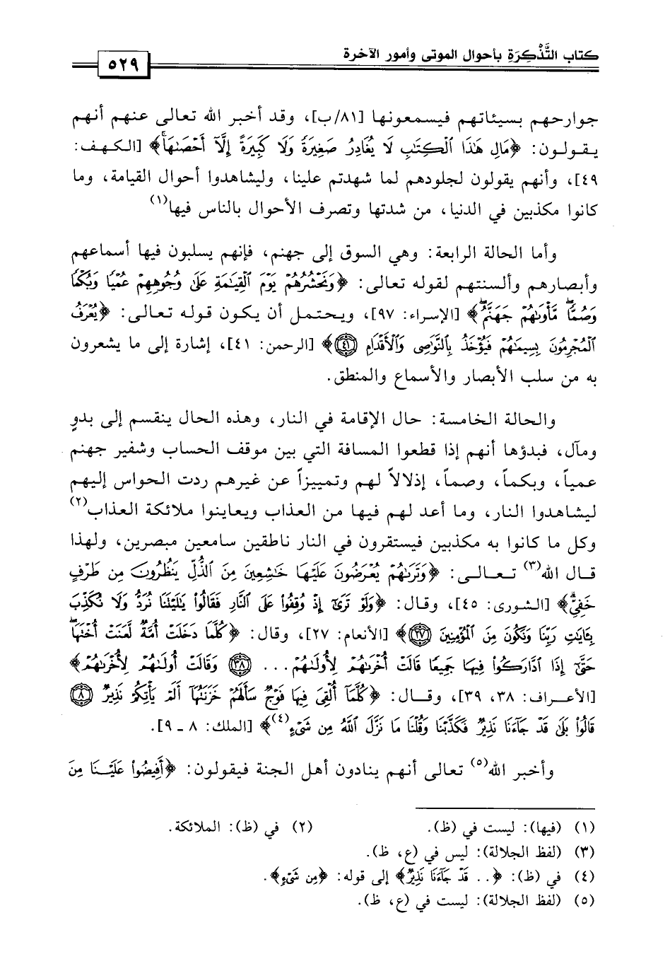 والحالة الخامسة، حال الإقامة في النار.