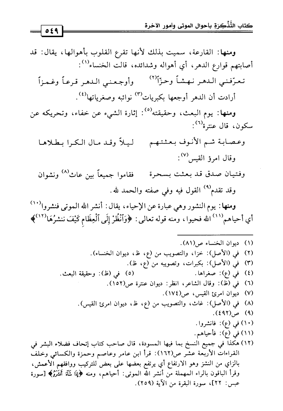ومنها: يوم البعث وحقيقته إثارة الشيء عن خفاء وتحريكة عن سكون، قال عنترة: