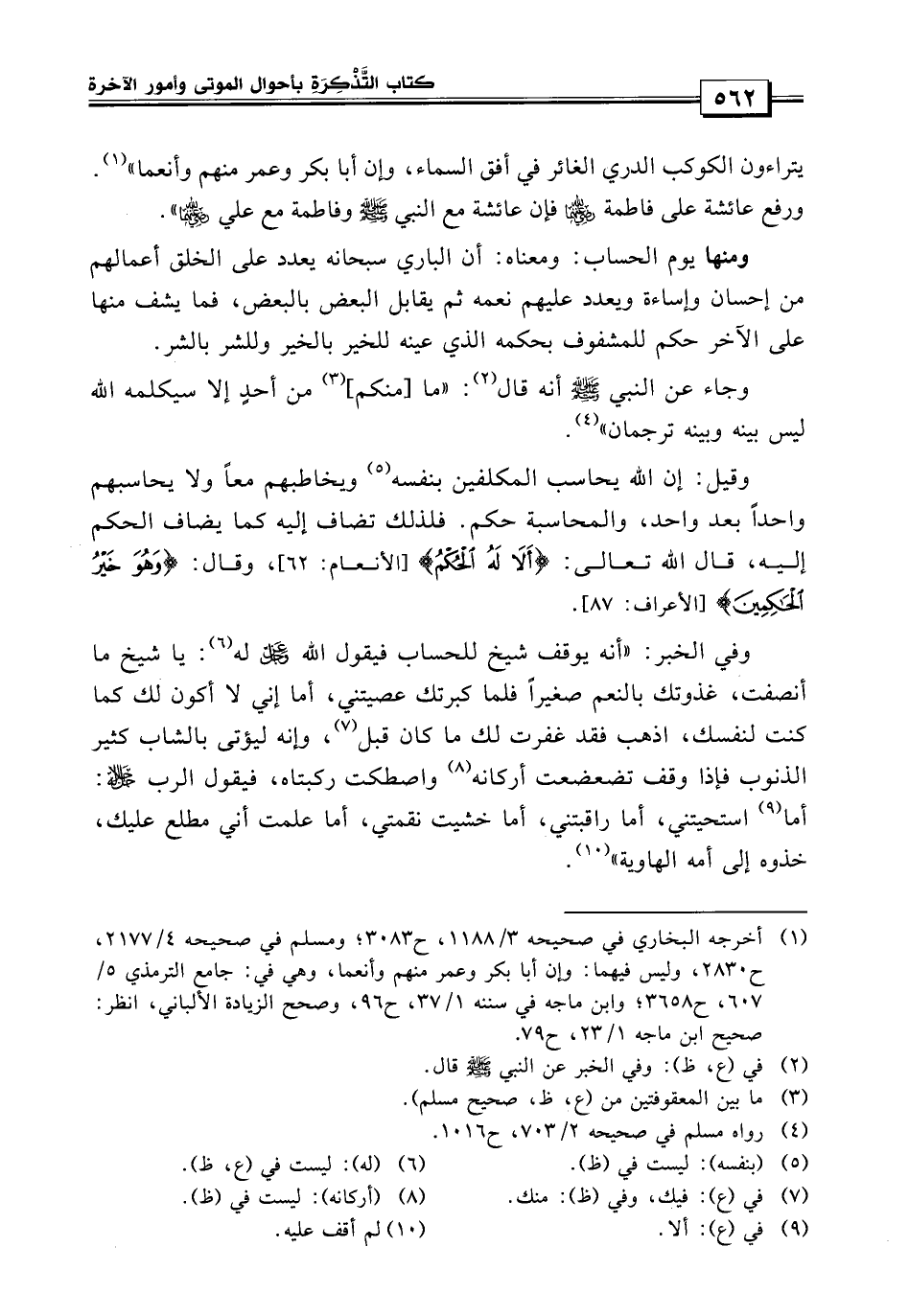 وجاء عن النبي أنه قال: «ما منكم من أحد إلا وسيكلمه الله ليس بينه وبينه ترجمان» فقيل إن الله يحاسب المكلفين بنفسه ويخاطبهم معاً ولا يحاسبهم واحداً بعد واحد والمحاسبة حكم.