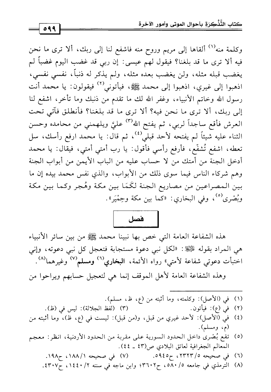 رواه الأئمة البخاري ومسلم وغيرهما، وهذه الشفاعة العامة لأهل الموقف إنما هي ليجعل حسابهم ويراحوا من