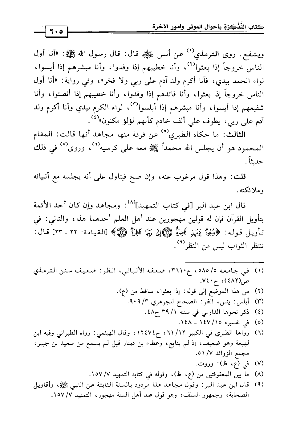 وروى الترمذي «عن أنس رضي الله عنه قال: قال رسول الله صلى الله عليه وسلم: أنا أول الناس خروجاً إذا بعثوا، وأنا خطيبهم إذا وفدوا، وأنا مبشرهم إذا أيسوا، لواء الحمد بيدي فأنا أكرم ولد آدم على ربي ولا فخر» .