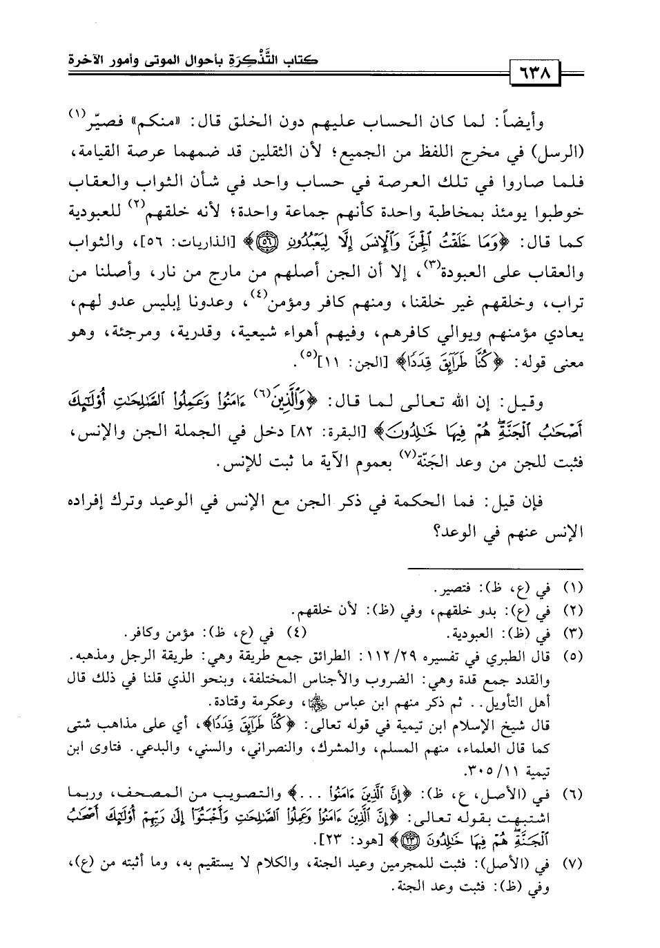 وقيل: إن الله تعالى لما قال: {والذين آمنوا وعملوا الصالحات أولئك أصحاب الجنة هم فيها خالدون} دخل في الجملة الجن والإنس، فثبت للجن من وعد الجنة لعموم الآية ما ثبت للإنس.