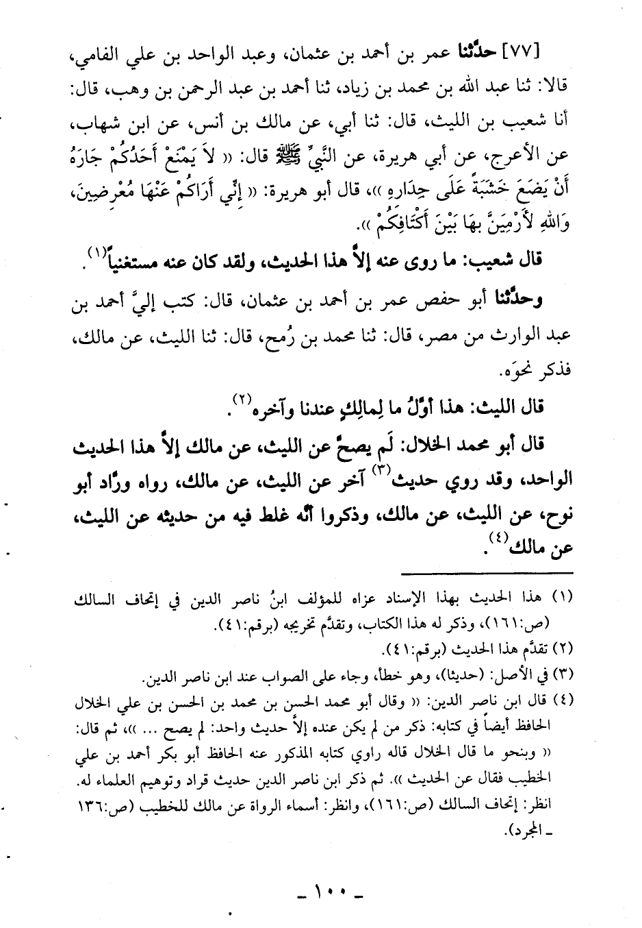 وحدثنا أبو حفص عمر بن أحمد بن عثمان قال كتب إلي أحمد بن عبد الوارث من مصر قال: حدثنا محمد بن رمح قال: حدثنا الليث عن مالك ,.. فذكر نحوه.