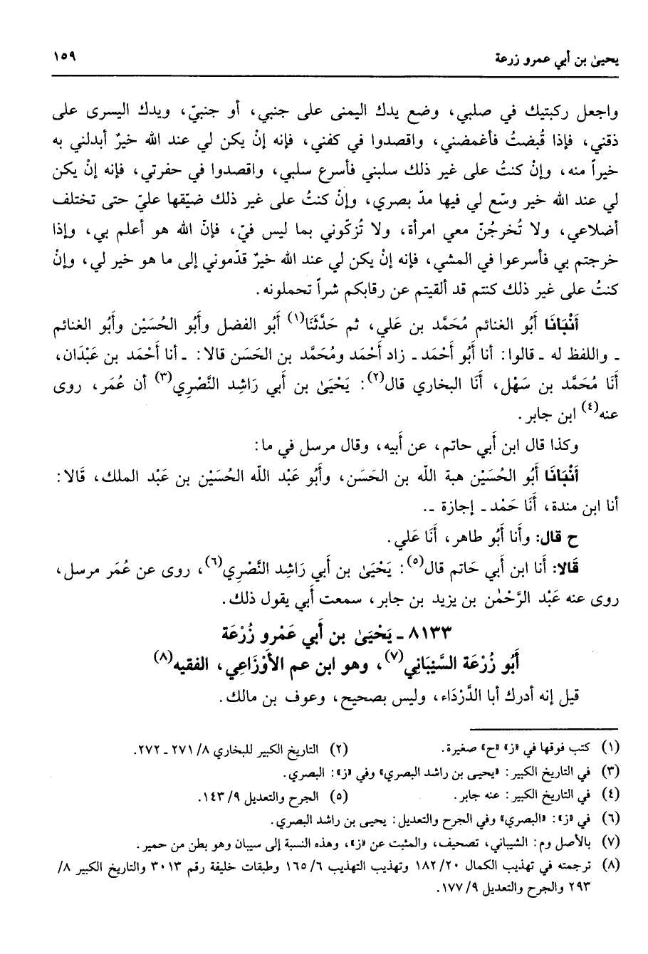 8133 - يحيى بنأبي عمرو زرعة أبو زرعة السيباني (7) وهو ابن عم الأوزاعي الفقيه (8) قيل إنه أدرك أبا الدرداء وليس بصحيح وعوف بن مالك