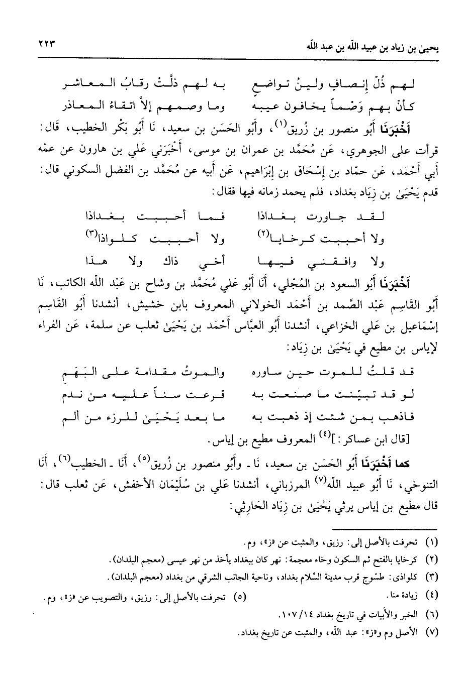 (6) الخبر والابيات في تاريخ بغداد 14 / 107
