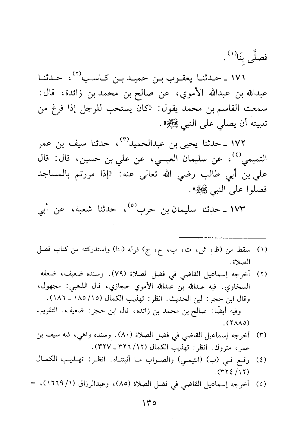 وفيه أيفما: صالح بن محمد بن زائده، قال ابن حجز: ضعيف. التقريب