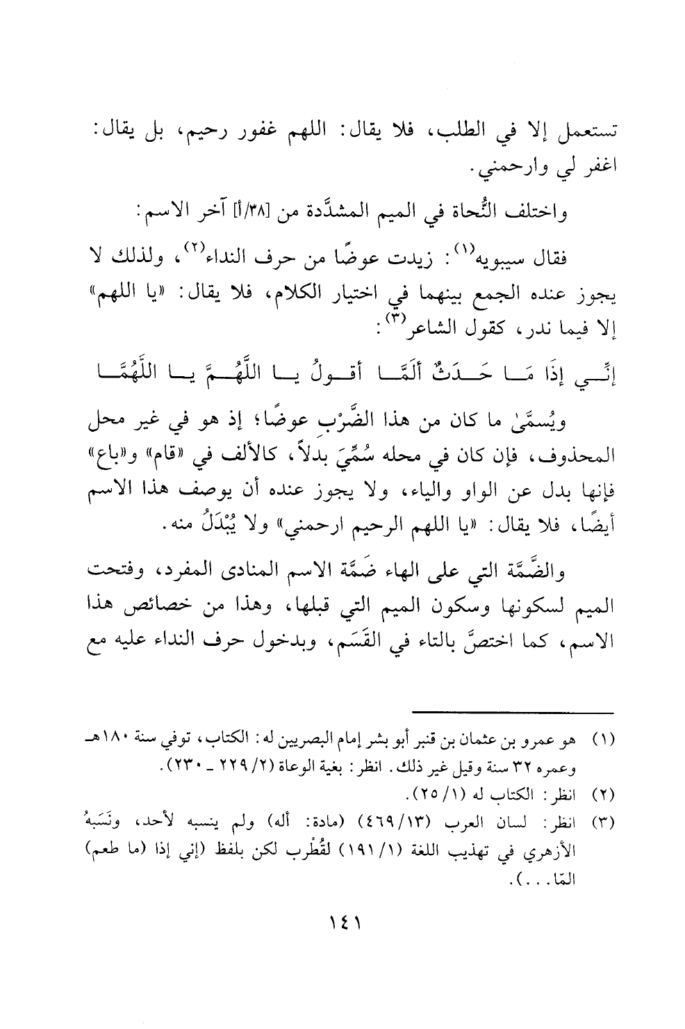 فقال سيبويه (1): زيدت عوضا من حرف النداء (2)، ولذلك لا
