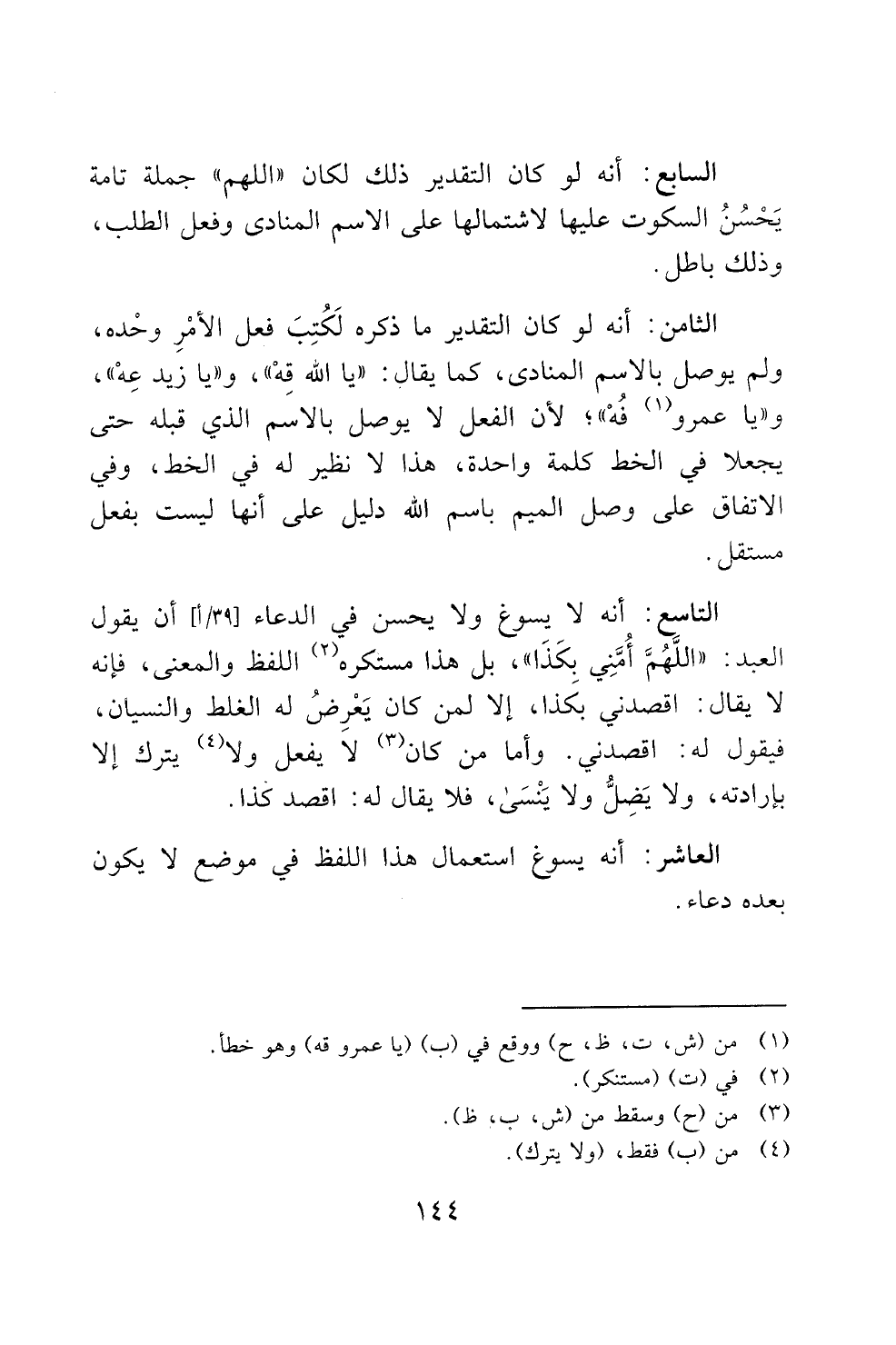 التاسع: أنه لا يسوغ ولا يحسن في الدعاء 91 سا أ] أن يقول