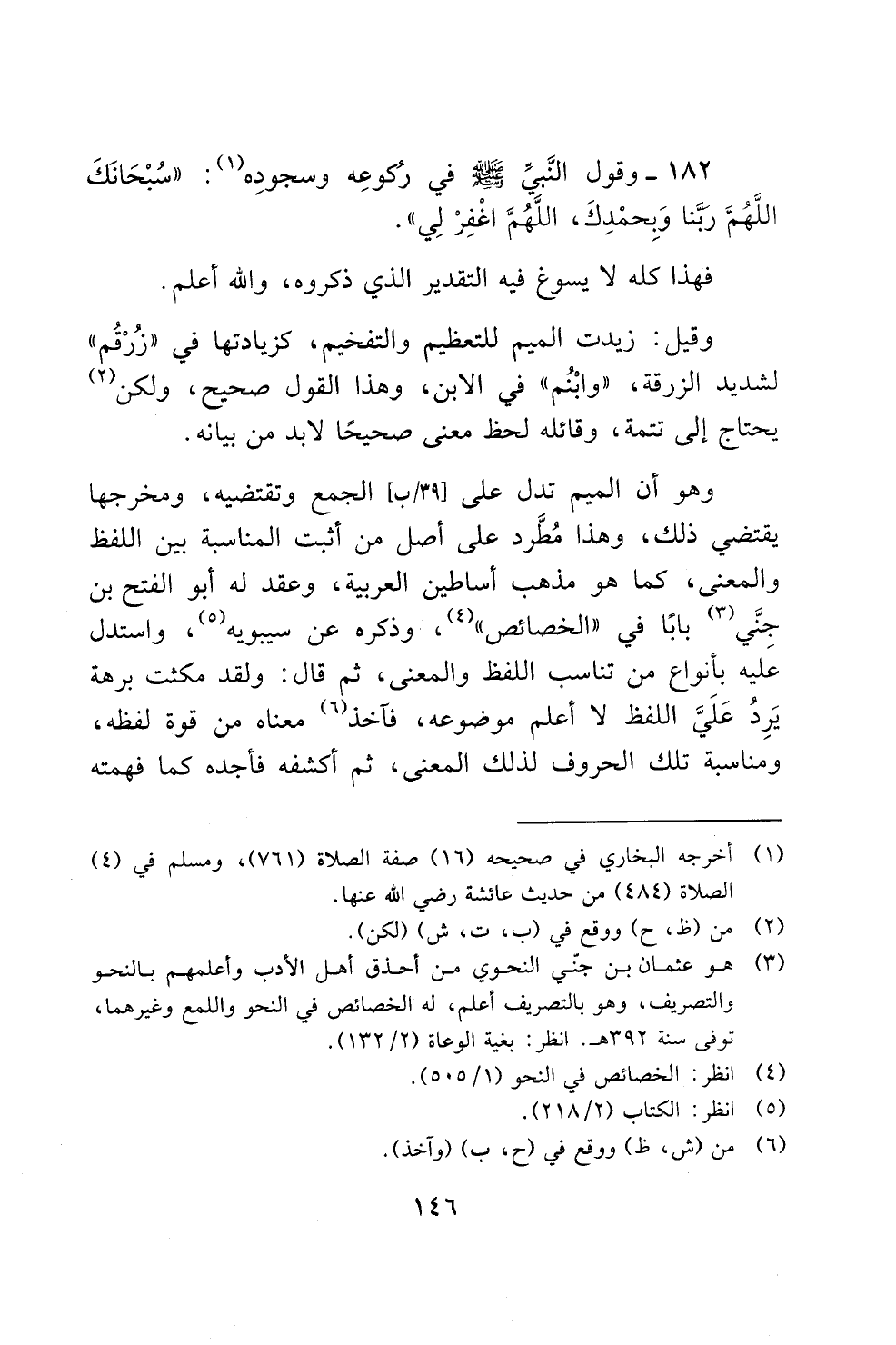 جني با في "الخصائص" (4)، وذكره عن سيبويه ()، واستدل
