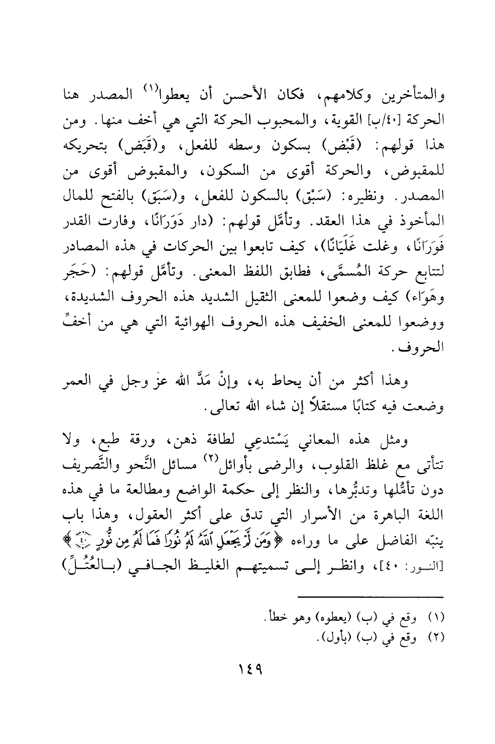 والمتأخرين وكلامهم، فكان الاحسن أن يعطوا (1) المصدر هنا