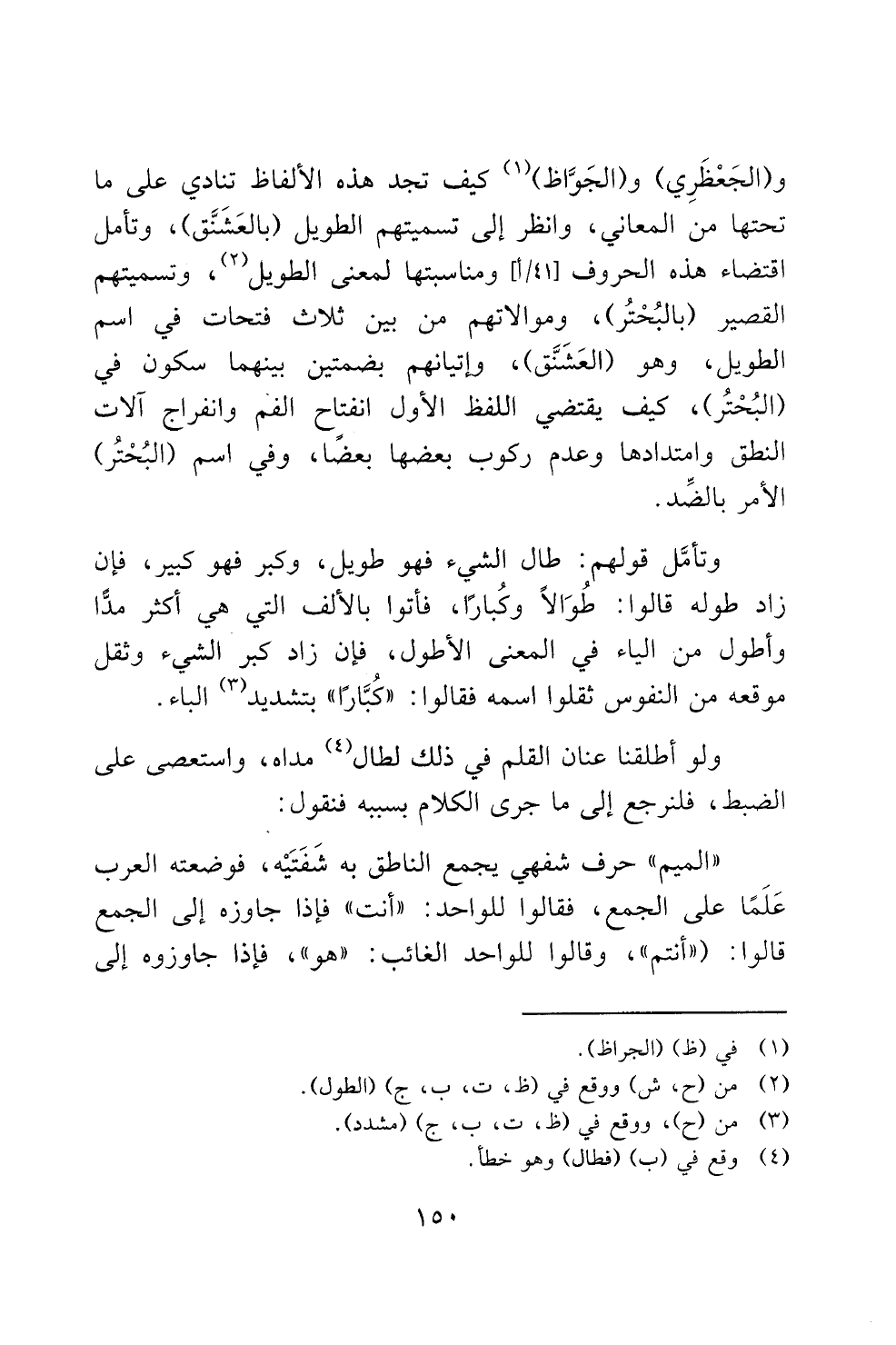 النطق وامتدادها وعدم ركوب بعضها بعضا، وفي اسم (السحتر)