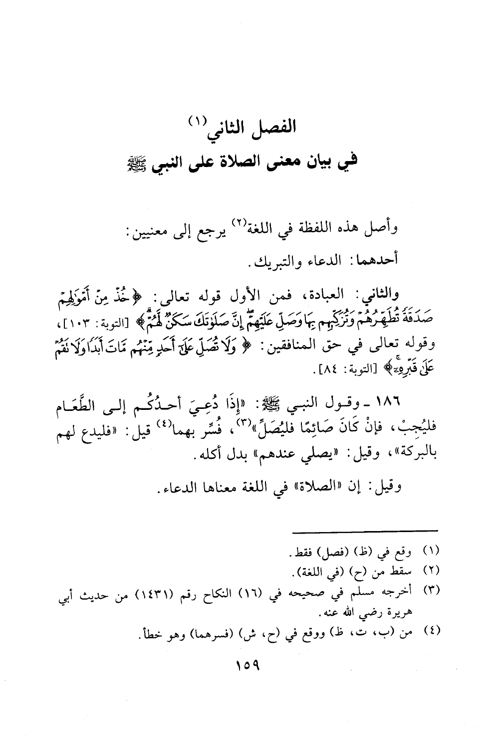 الفصل الثاني (1) في بيان معنى الصلاة على النبي صلى الله عليه وسلم