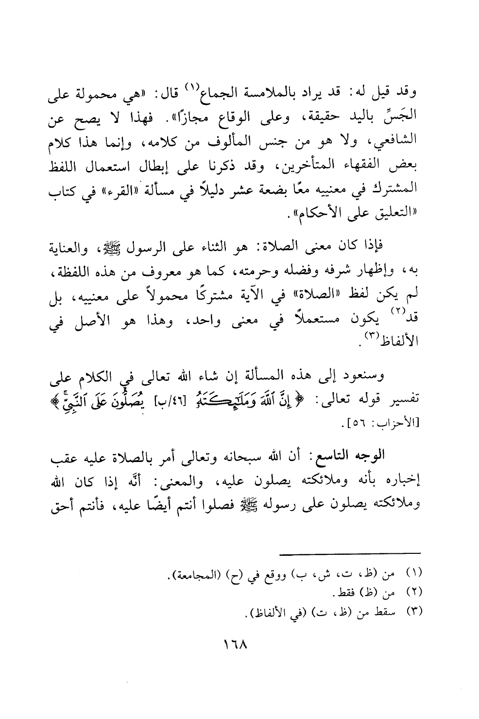 تفسير قوله تعالى: < ن الله وملتحته [146 ب] يصلويئ على النبئ>