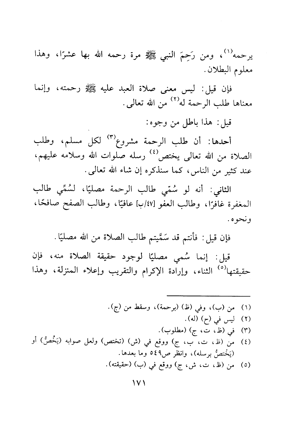 فإن قيل: ليس معنى صلاة العبد عليه جم! يو رحمته، وإنما