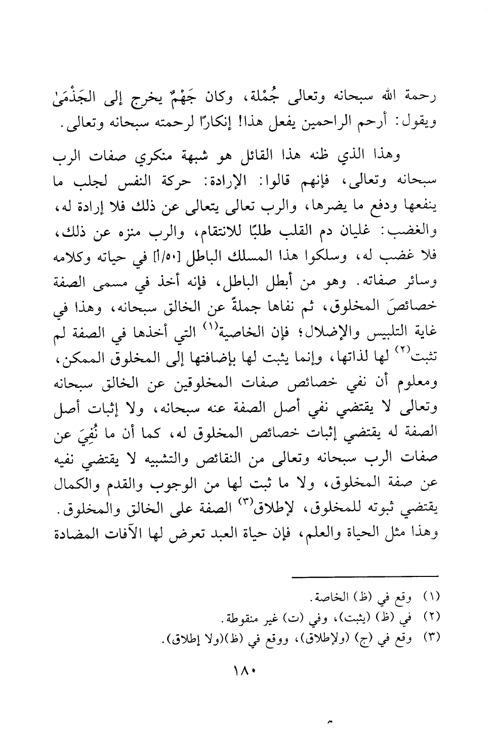 وهذا الذي ظنه هذا القائل هو شبهة منكري صفات الرب