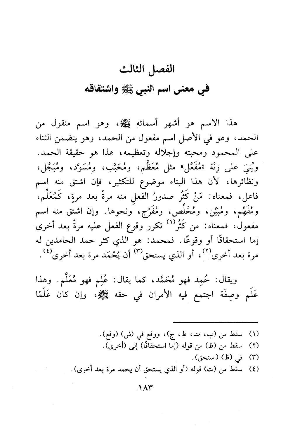 الفصل الثالث في معنى اسم النبي صلى الله عليه وسلم واشتقاقه