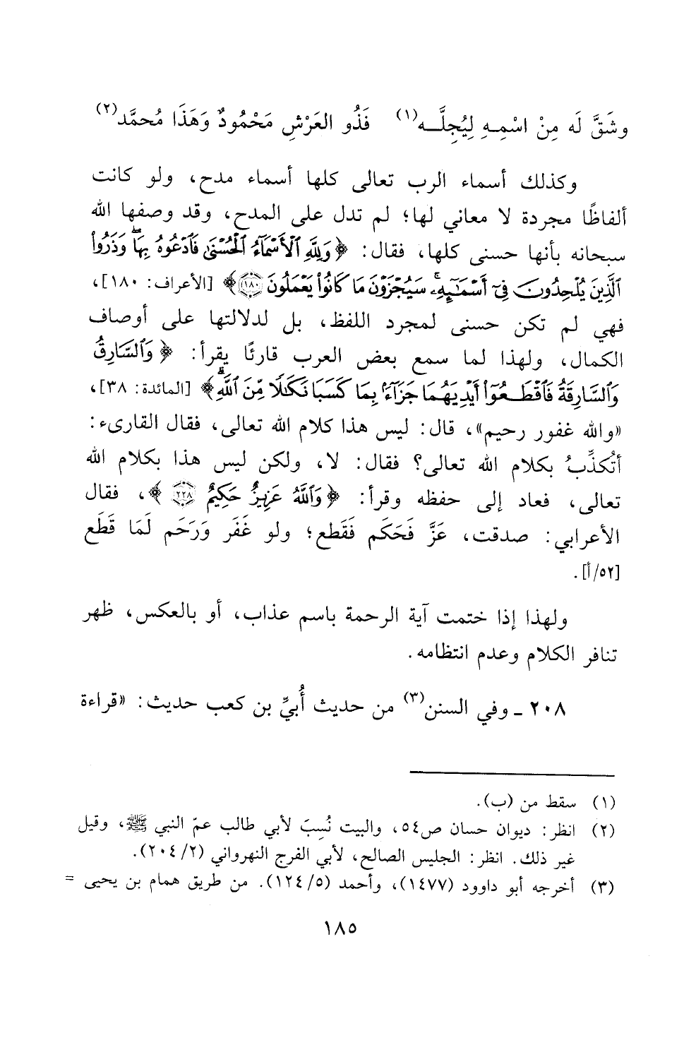 208 - وفي السنن (3) من حديث أبي بن كعب حديث: "قراءة