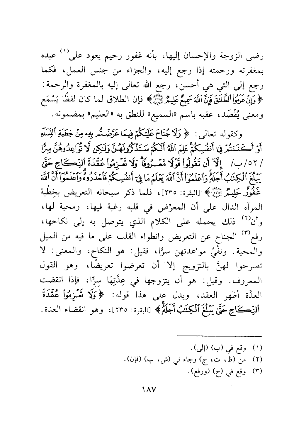 غفور طيم *؟ */1> [البقرة: 235]، فلما ذكر سبحانه التعريض بخطبة