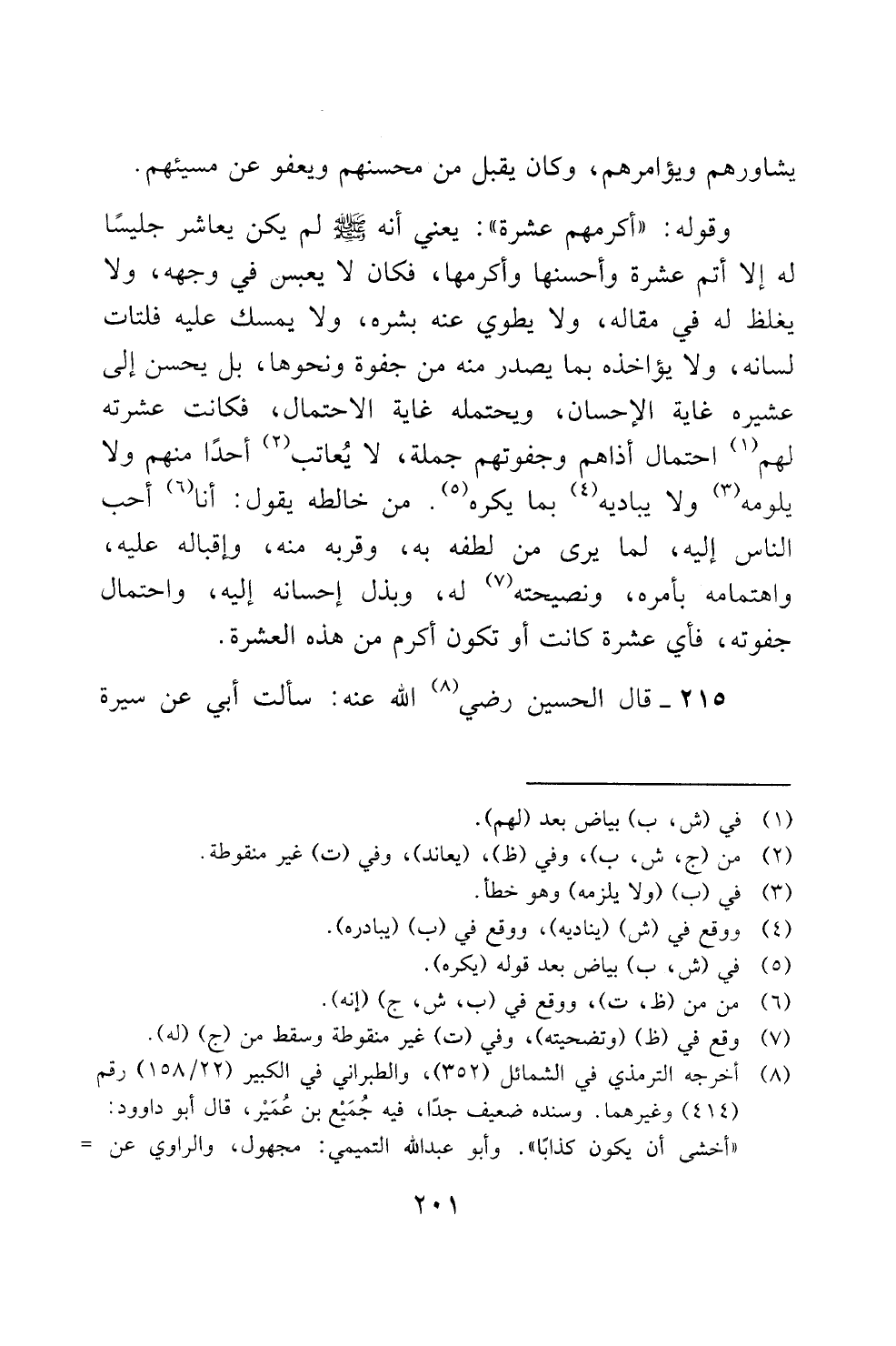 215 - قال الحسين رضي (8) الله عنه: سألت ابي عن سيرة