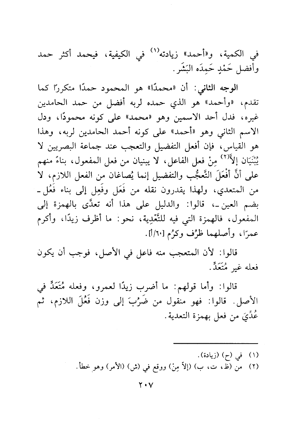 في الكمية، و"أحمد" زيادته (1) فى الكيفية، فيحمد أكثر حمد