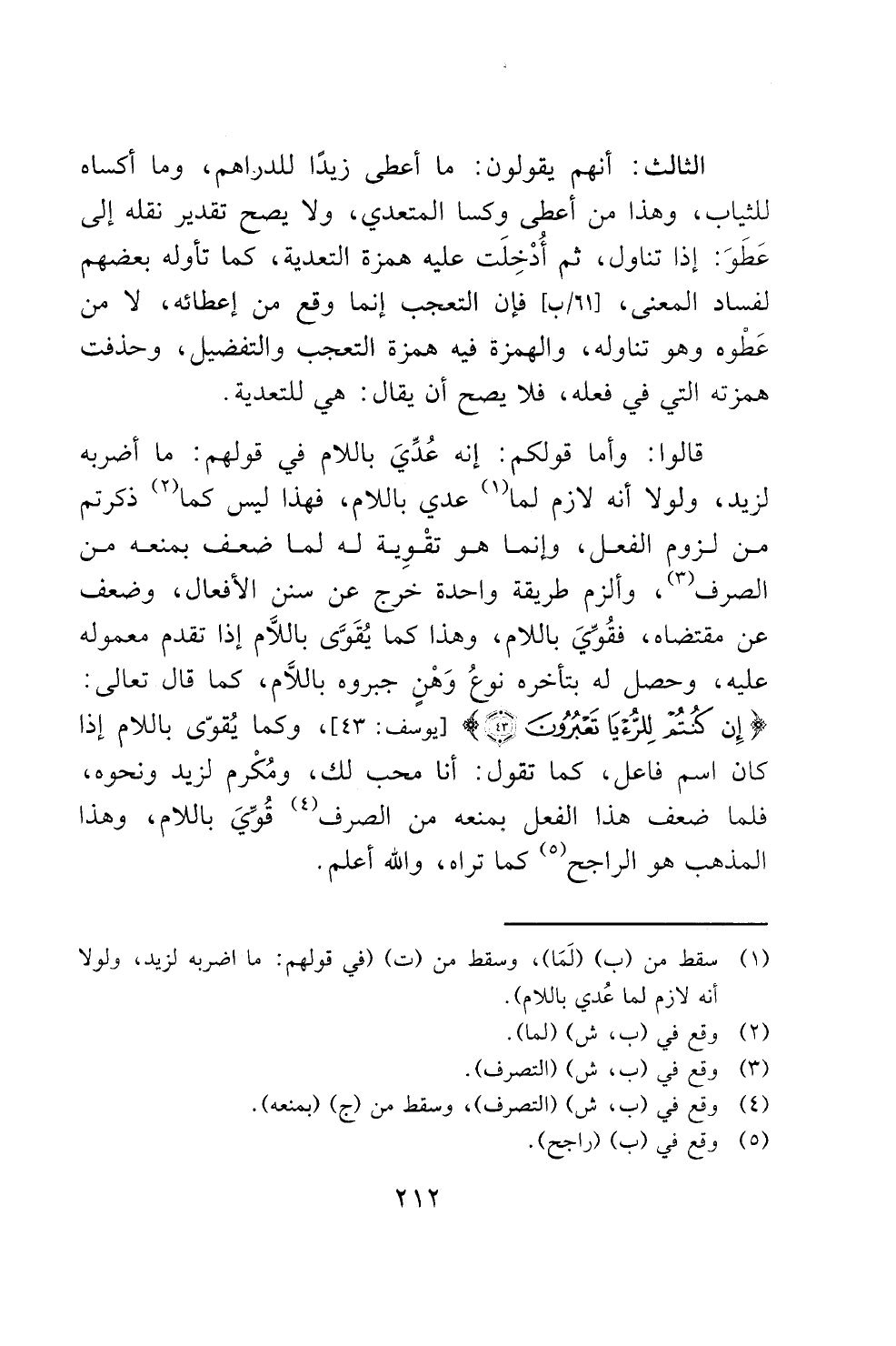 لزيد، ولولا أنه لازم لما (1) عدي باللام، فهذا ليس كما (2) ذكرتم
