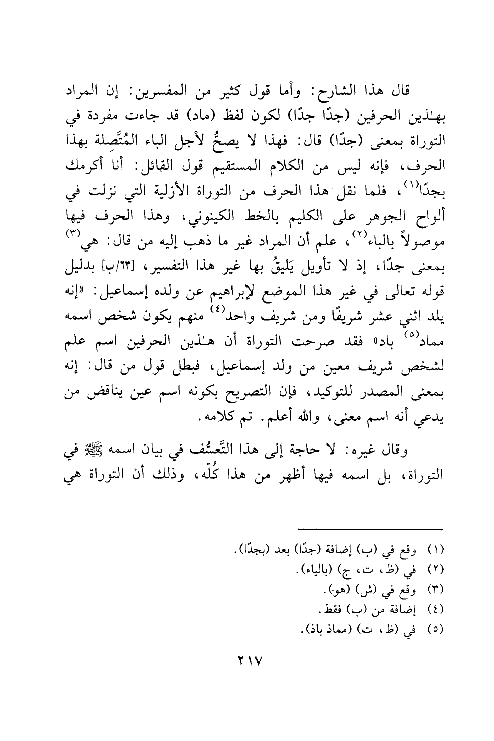 التوراة بمعنى (جدا) قال: فهذا لا يصح لاجل الباء المتصلة بهذا