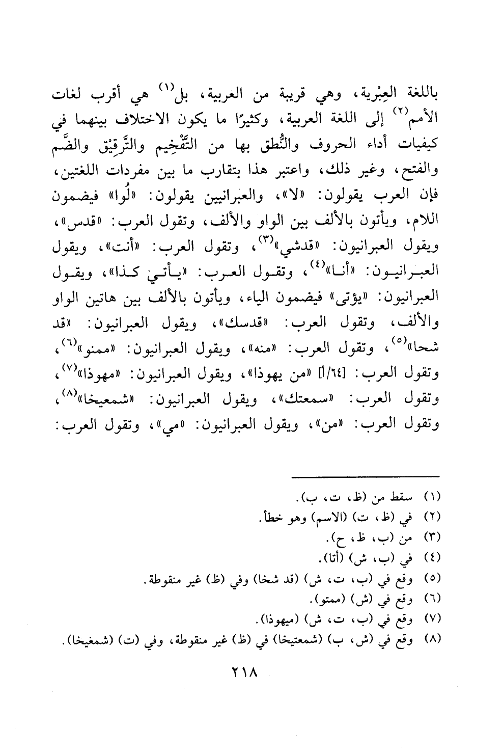 وتقول العرب: "سمعتك) "، ويقول العبرانيون: "شمعيخا" (8)،