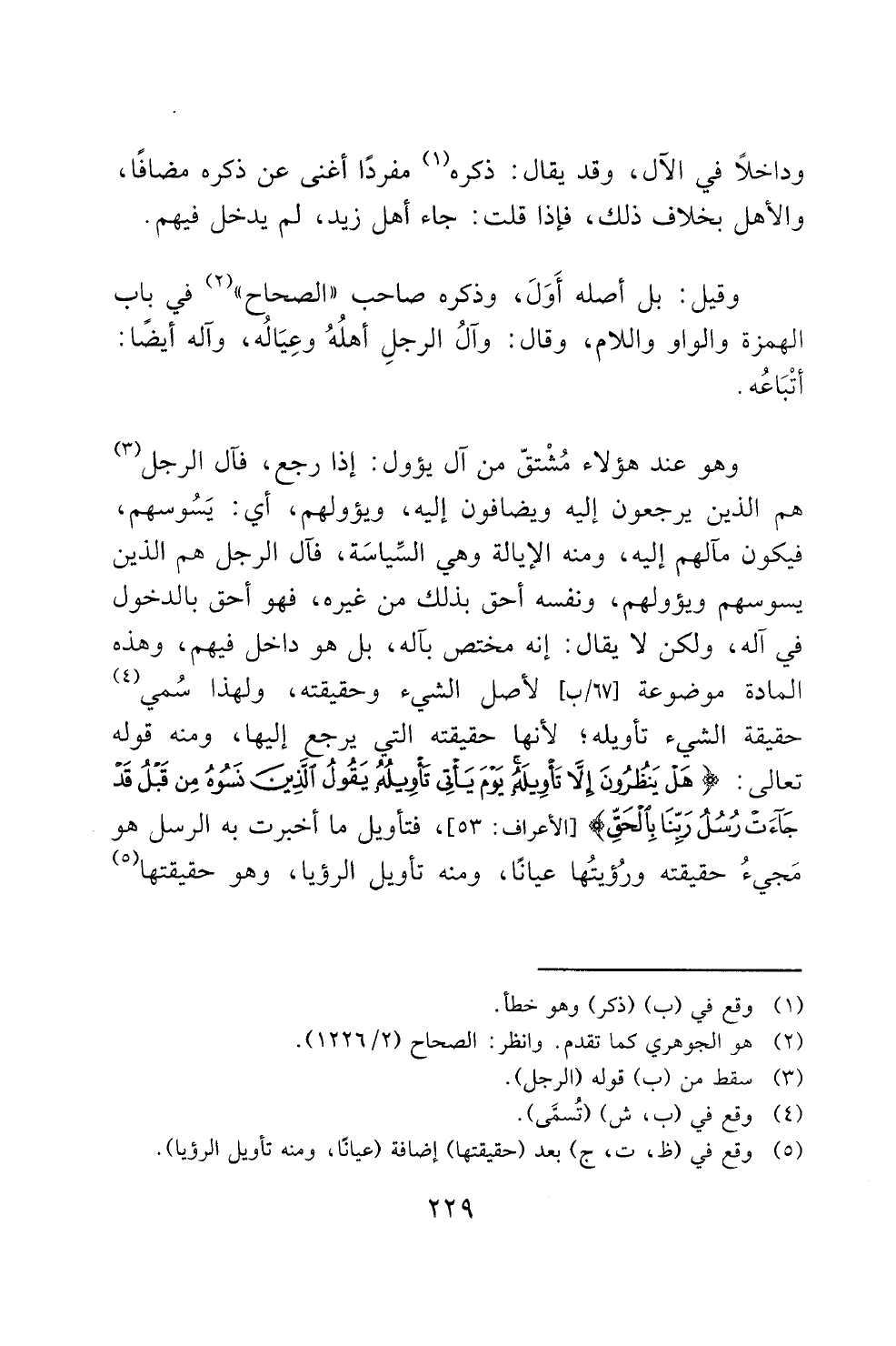 وهو عند هؤلاء مشتق من ال يؤول: إذا رجع، فال الرجل (3)