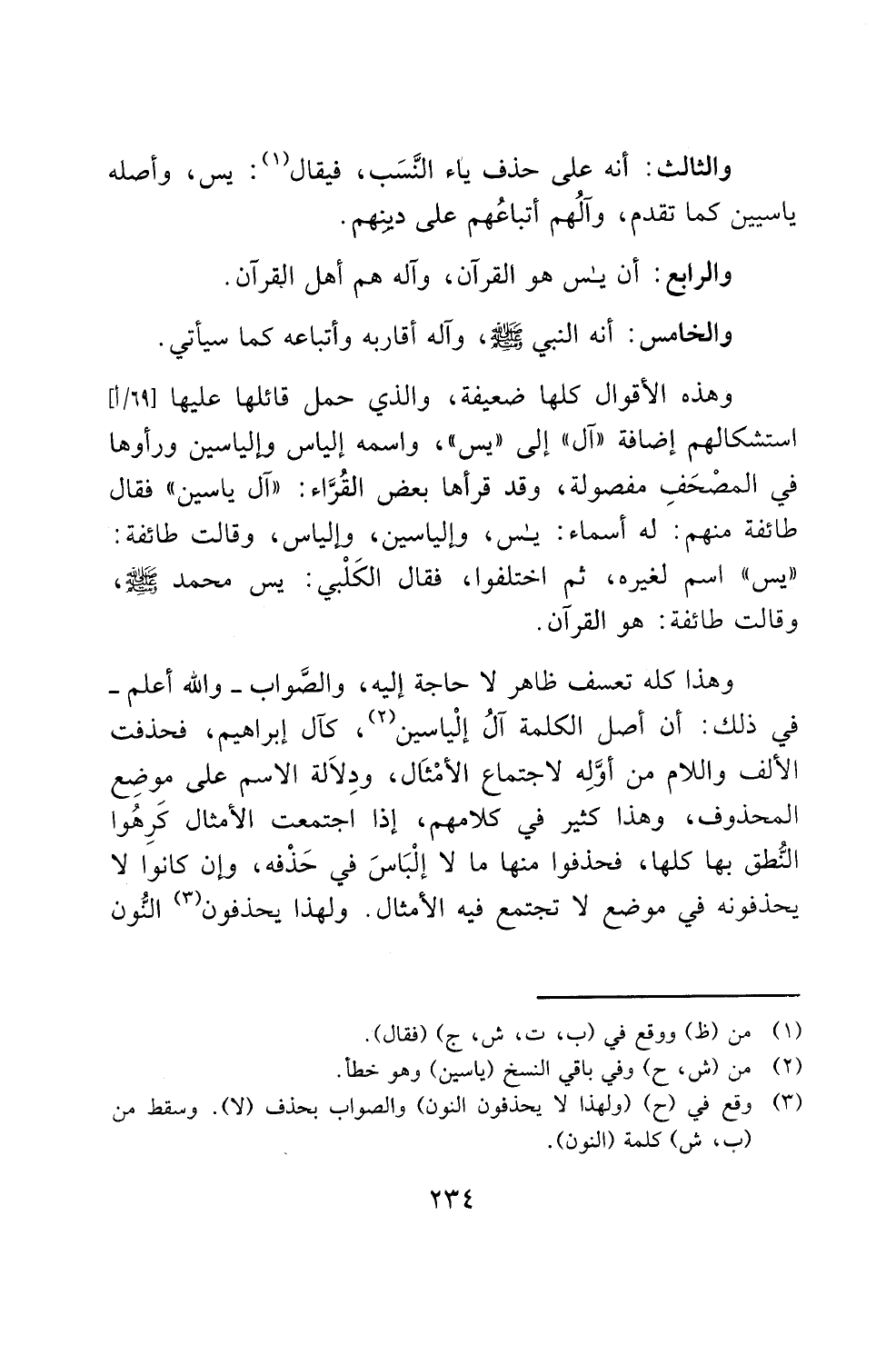 في ذلك: أن أصل الكلمة آل إلياسين (2)، كآل إبراهيم، فحذفت
