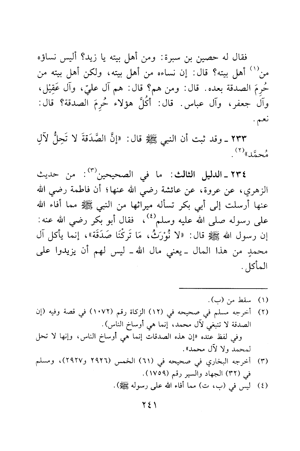 233 - وقد ثبت ان النبي صلى الله عليه وسلم ياله قال: "إن الصدقة لا تحل لال
