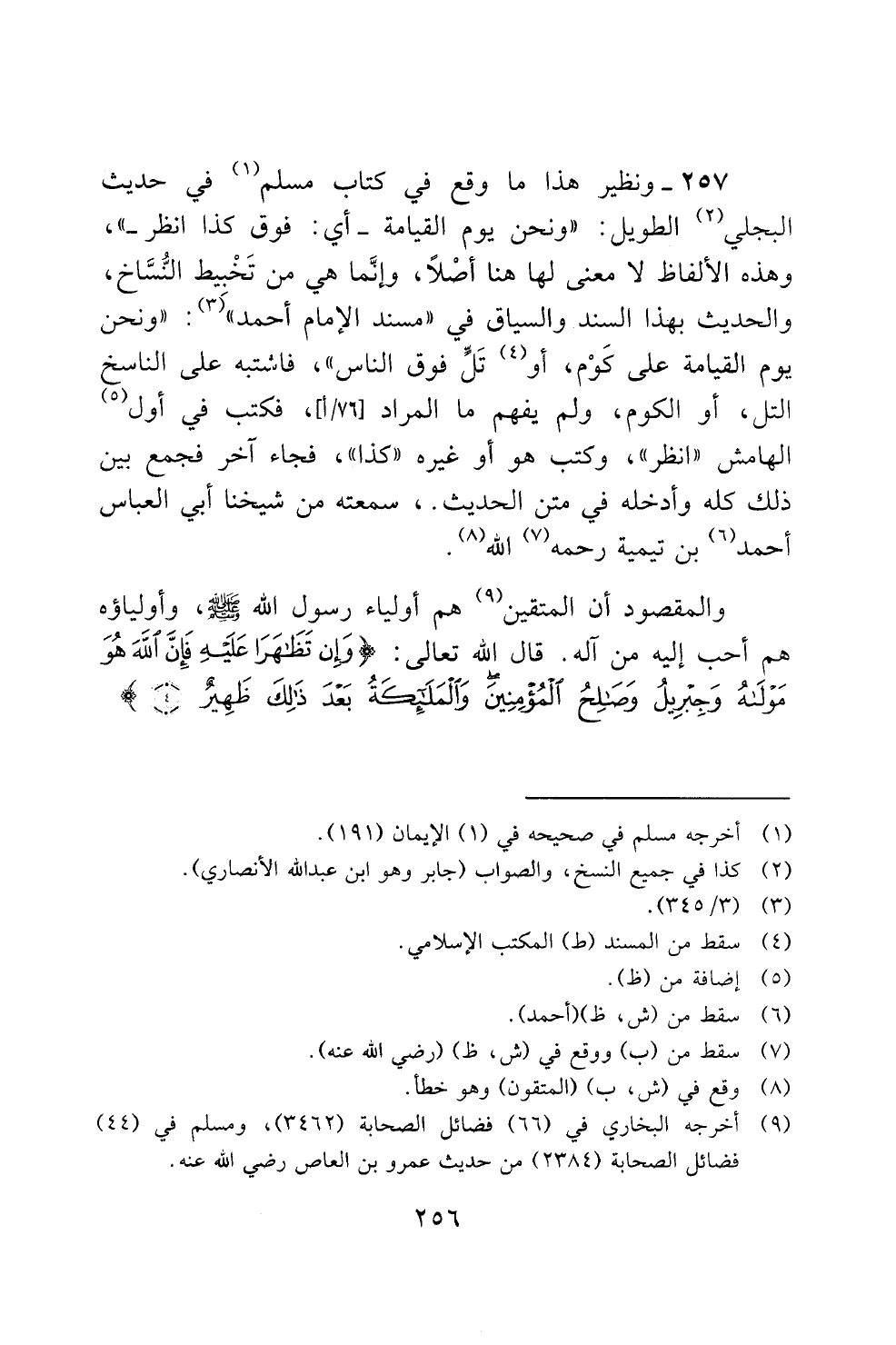 257 - ونظير هذا ما وقع في كتاب مسلم (1) في حديث