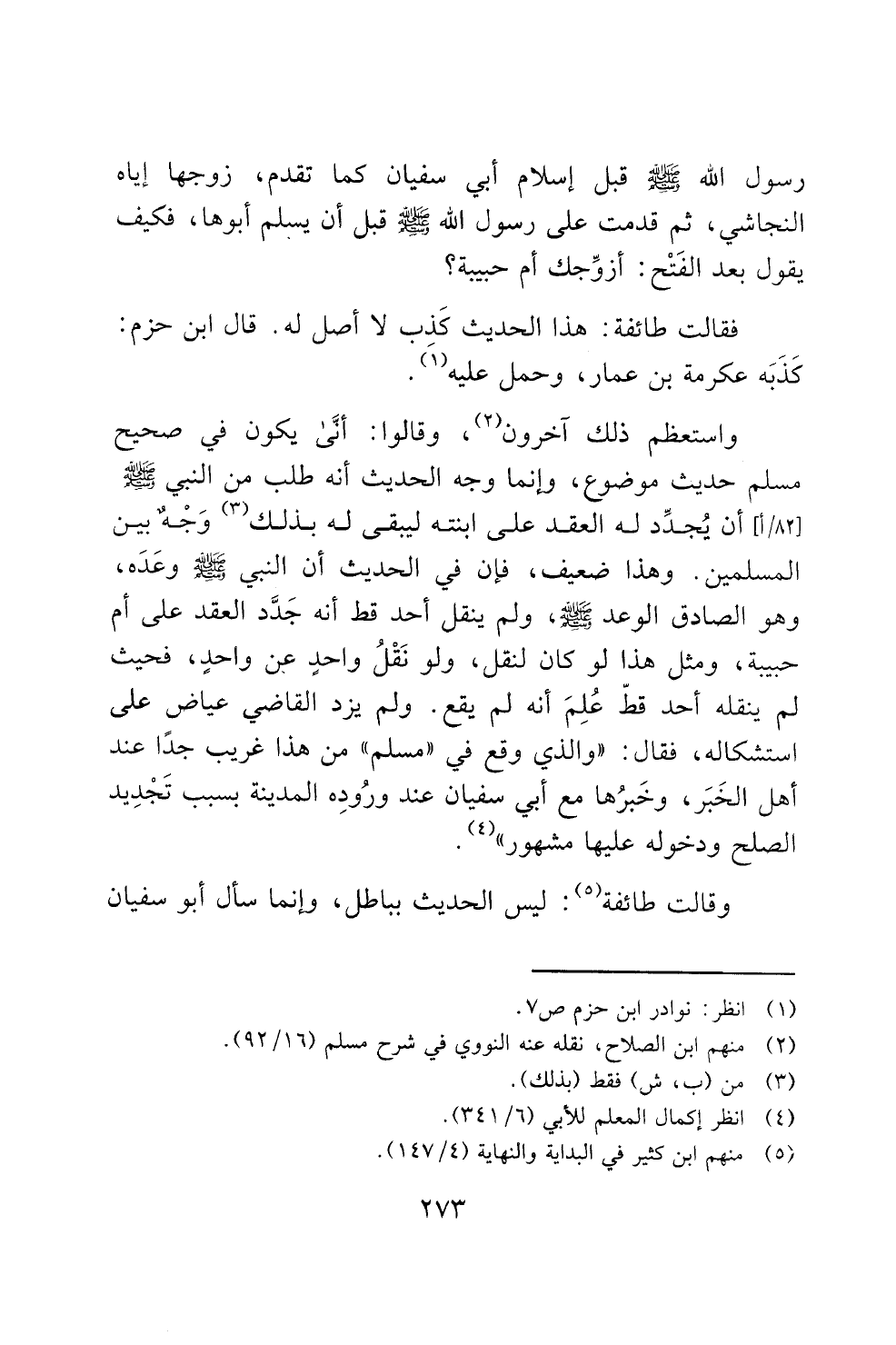 وقالت طائفة (): ليس الحديث بباطل، وانما سأل ابو سفيان