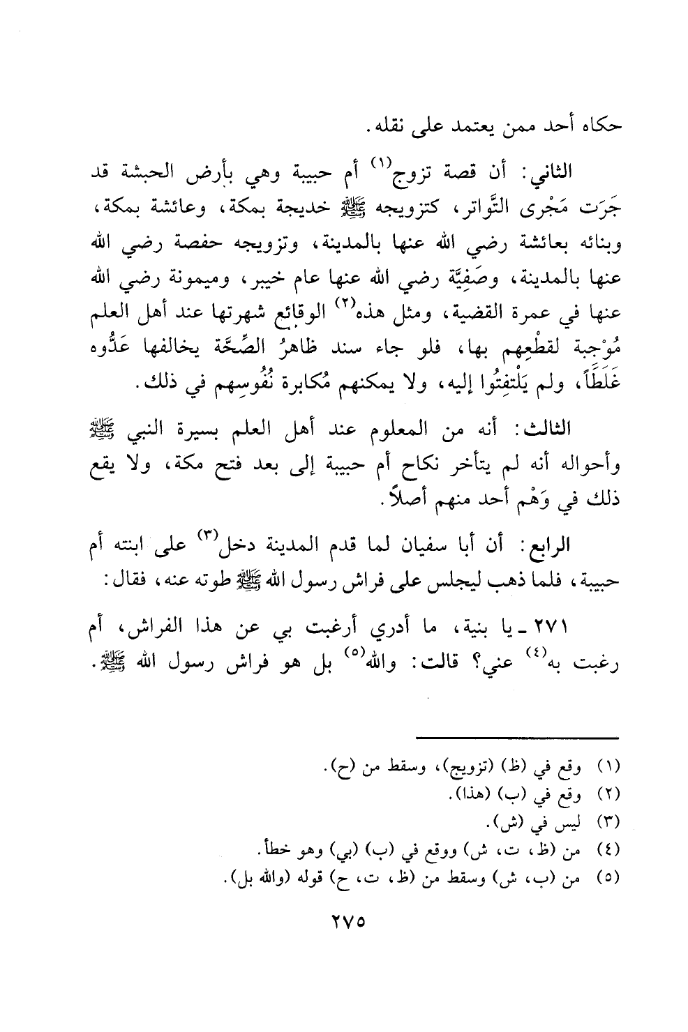 الرابع: أن ابا سفيان لما قدم المدينة دخل (3) على ابنته ا م